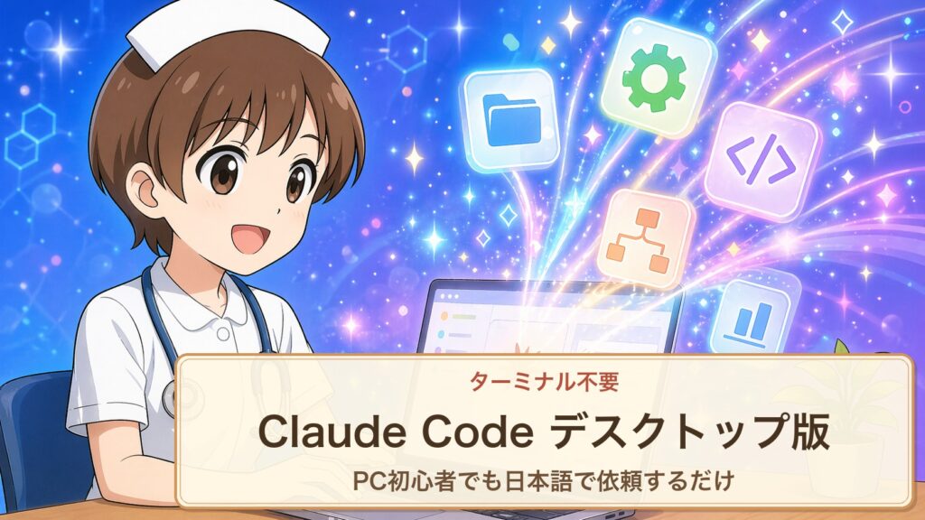 ターミナルが苦手でも大丈夫。Claude デスクトップアプリの Code タブを使えば、Node.js も npm も不要で、GUI 操作だけで Claude Code(エージェントAI)を始められます。4ステップで導入する手順を、公式ドキュメントを元に初心者向けに解説します。